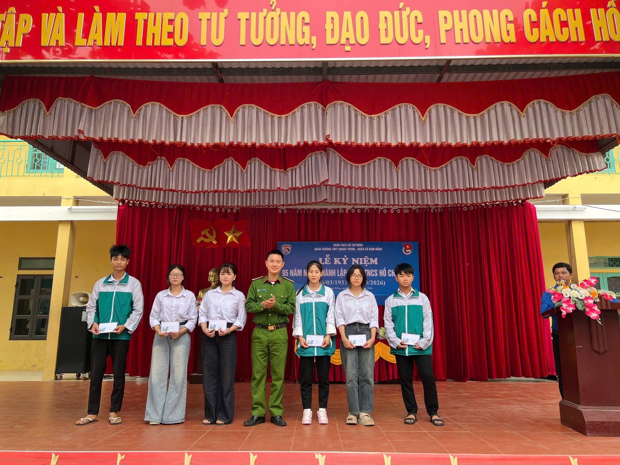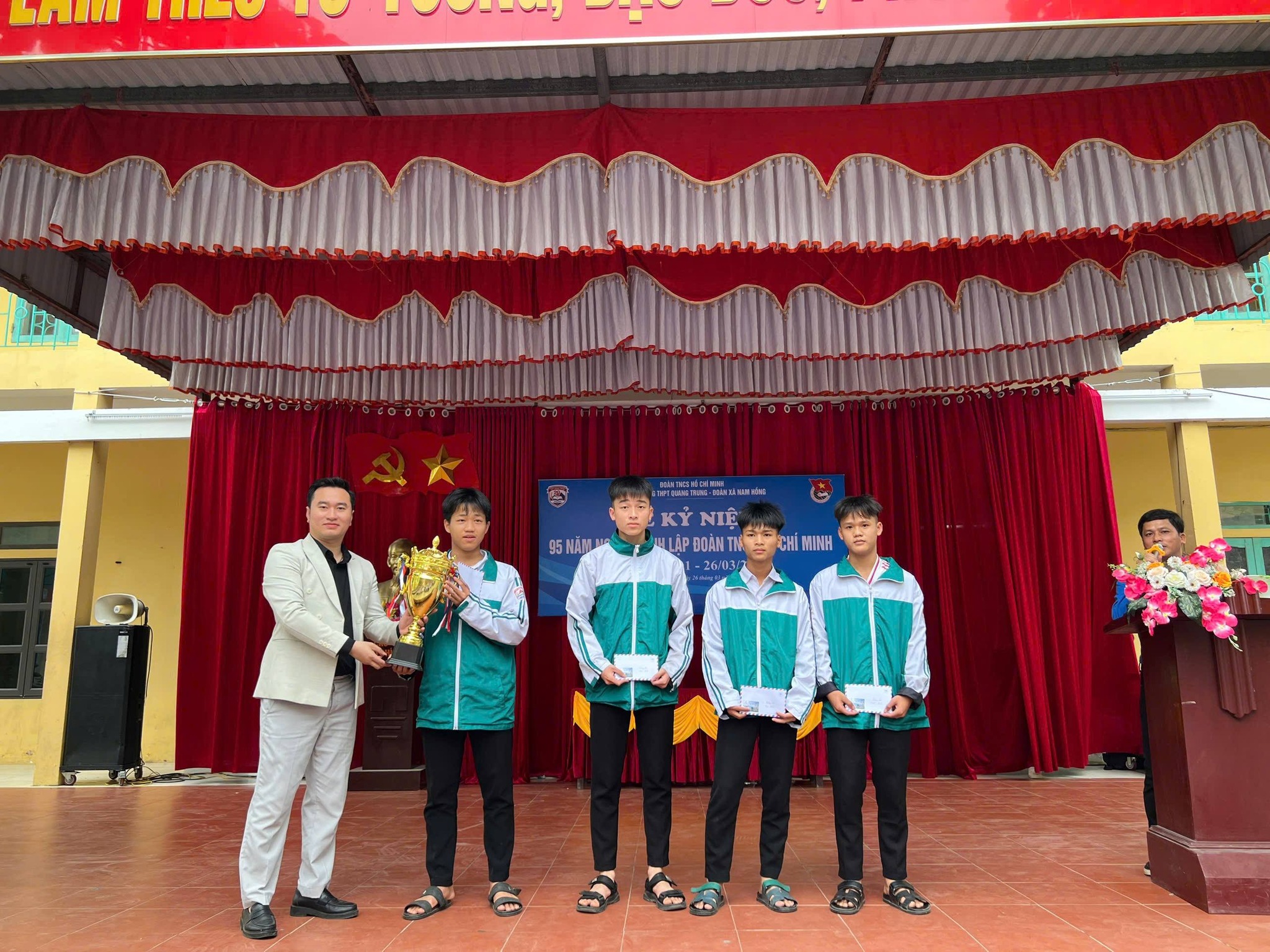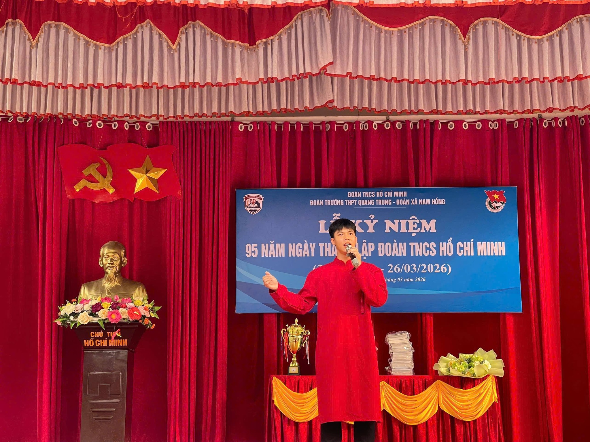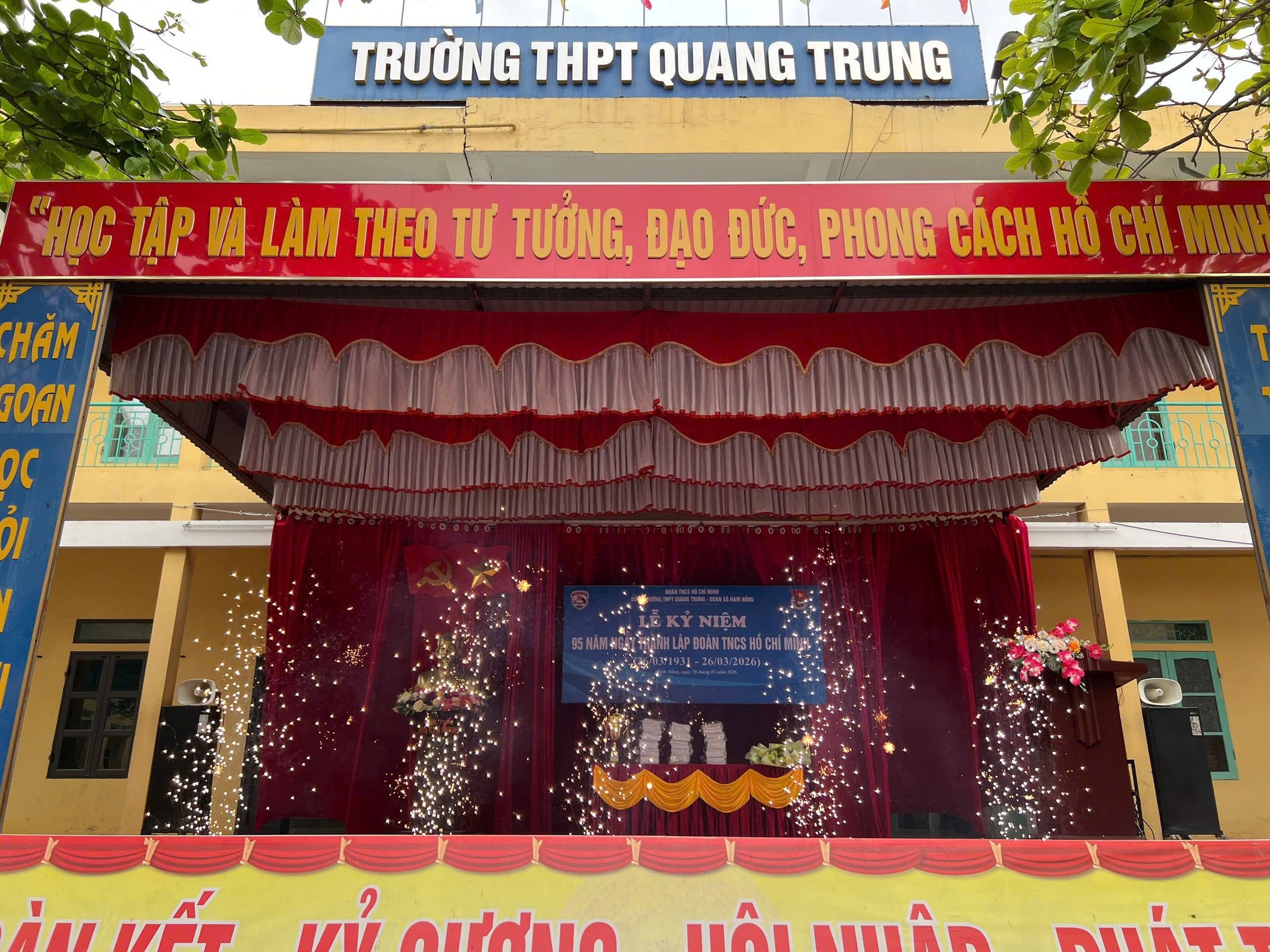 Sáng ngày 26/3/2026, Trường THPT Quang Trung đã long trọng tổ chức Lễ kỷ niệm 95 năm Ngày thành lập Đoàn TNCS Hồ Chí Minh trong không khí trang nghiêm, phấn khởi và đậm chất tuổi trẻ.