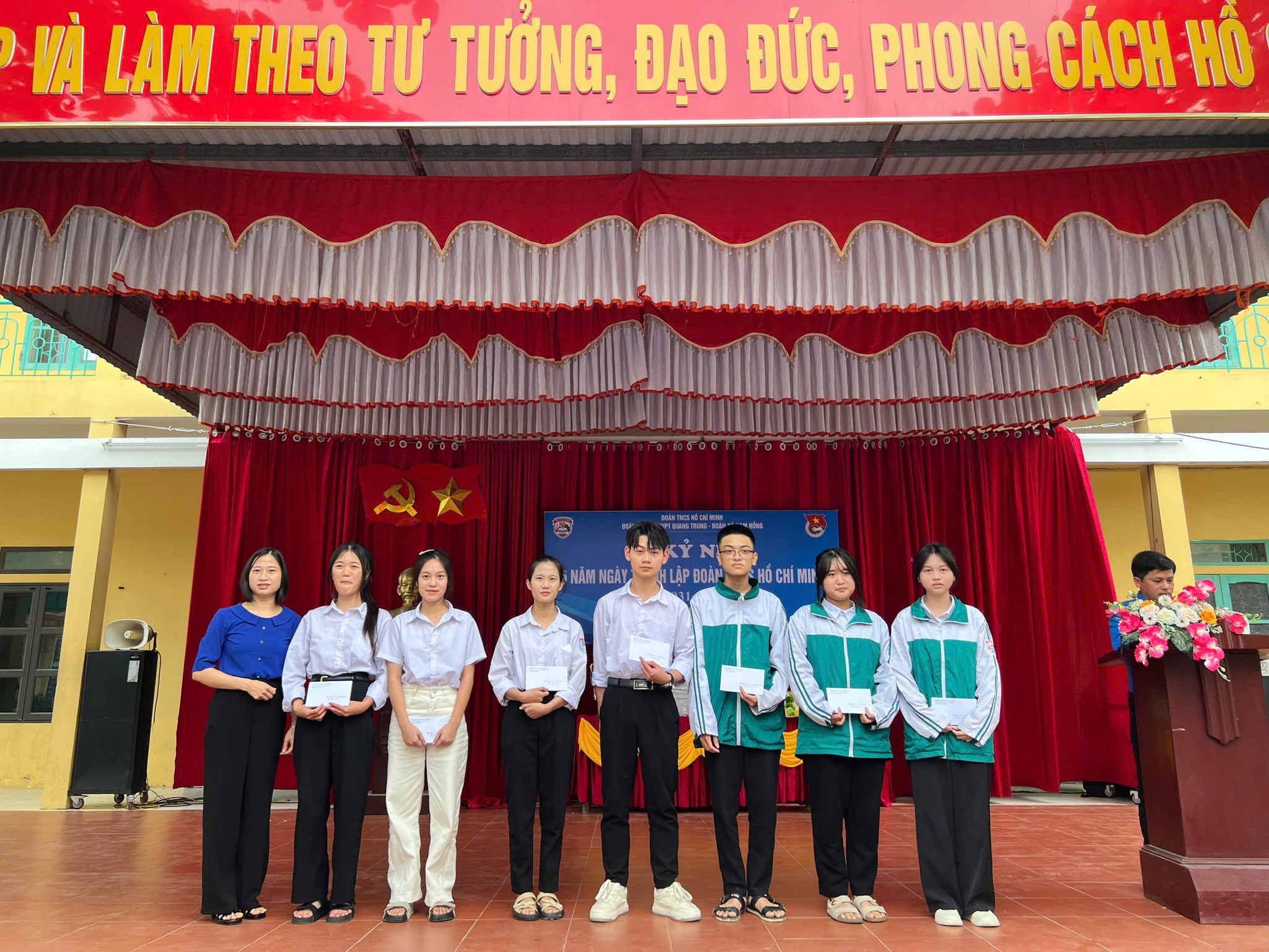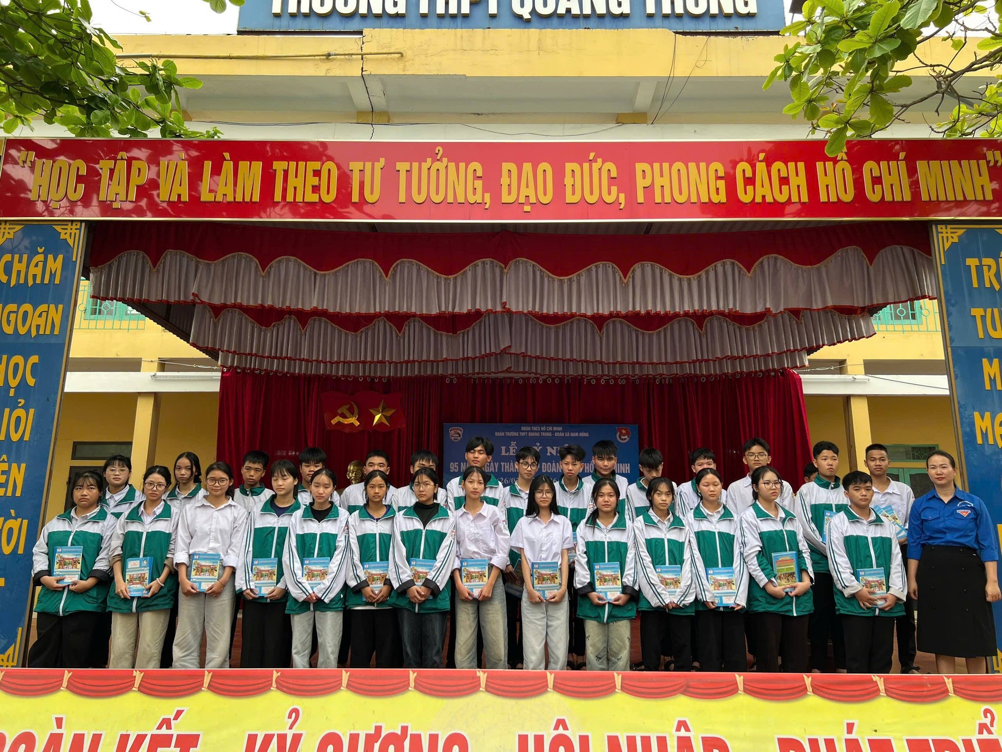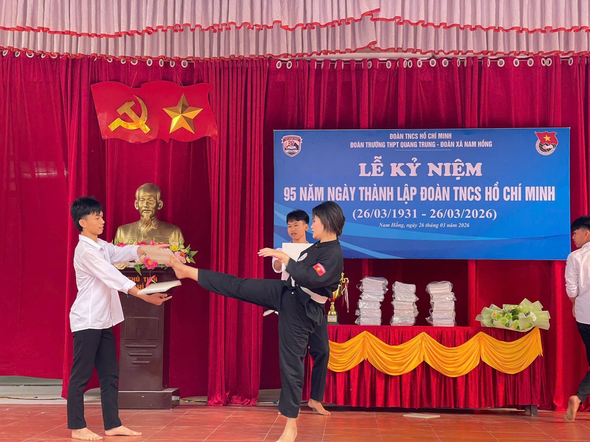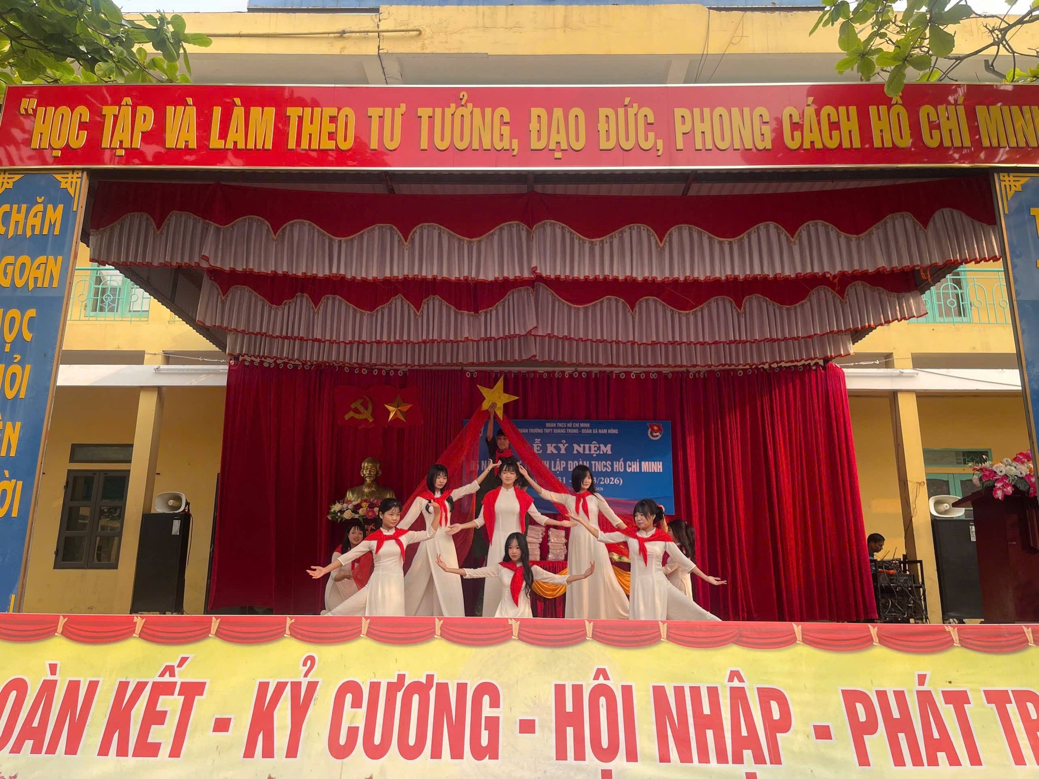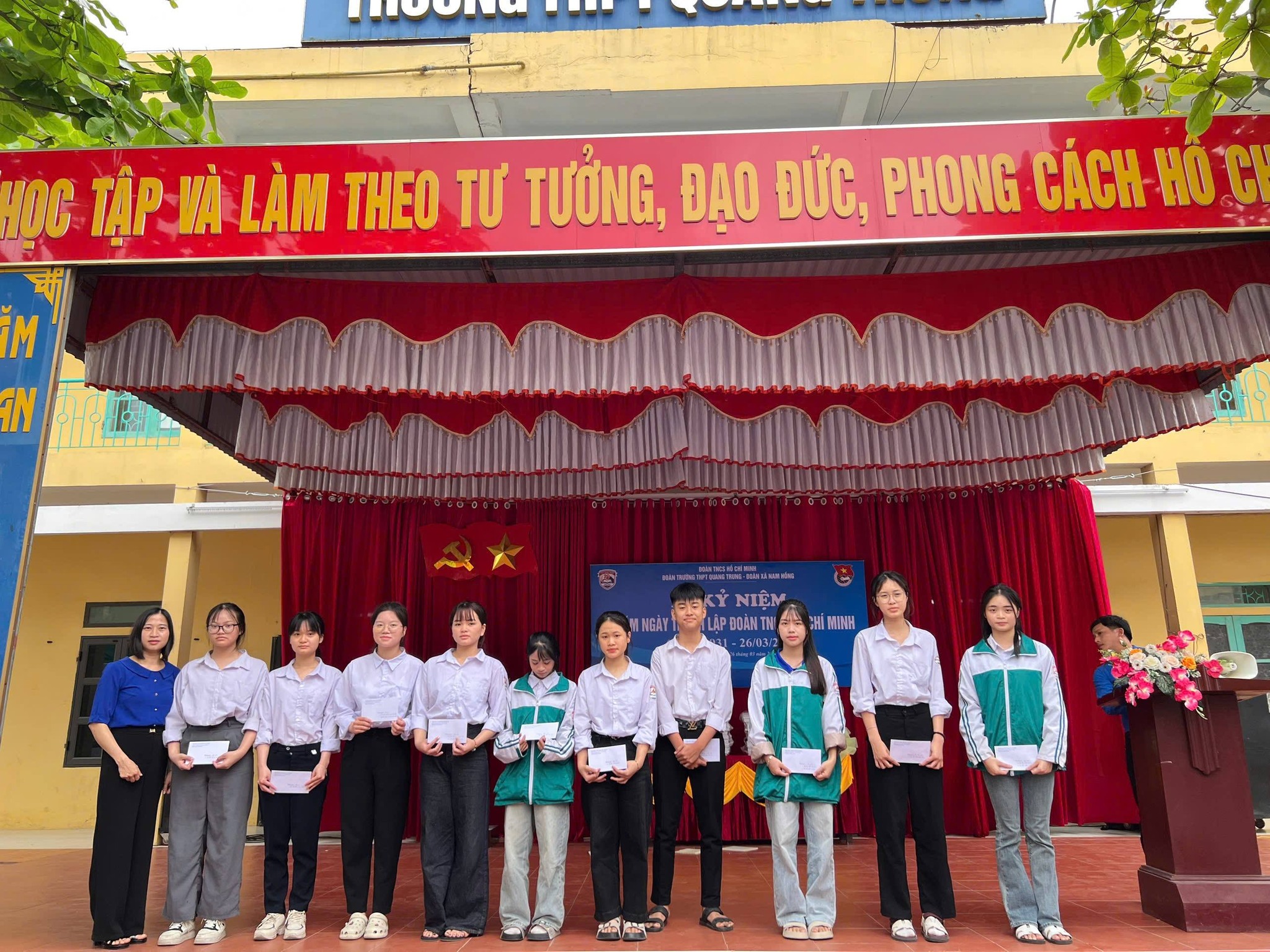 Sáng ngày 26/3/2026, Trường THPT Quang Trung đã long trọng tổ chức Lễ kỷ niệm 95 năm Ngày thành lập Đoàn TNCS Hồ Chí Minh trong không khí trang nghiêm, phấn khởi và đậm chất tuổi trẻ.